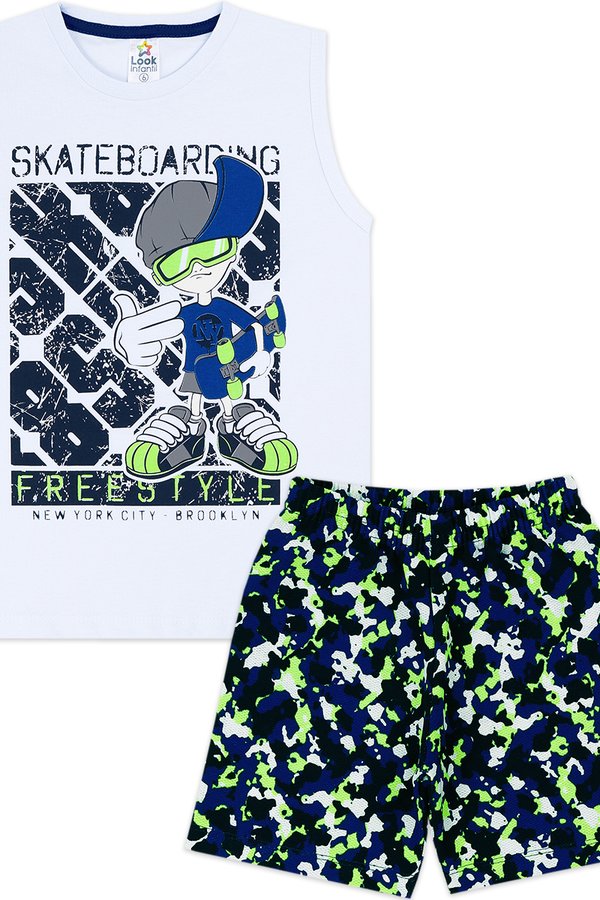 Estampa frontal com detalhes combinando com a bermuda;