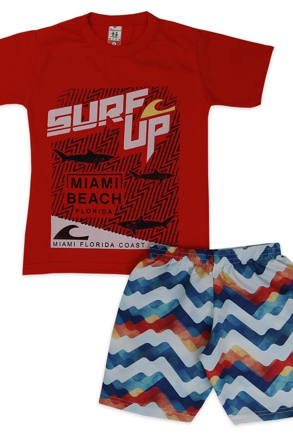 Estampa frontal com detalhes combinando com a bermuda;