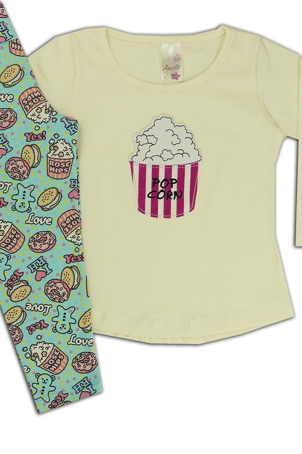 Bordado frontal com aplique de tecido combinando com a legging;