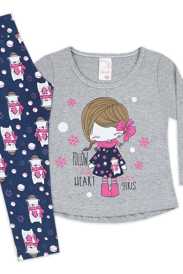 Estampa frontal com detalhe em Glitter combinando com legging;
